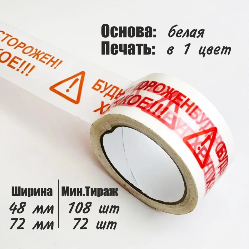В ассортименте найдете скотч шириной 48 и 72 мм с нанесением до 3-х цветов.